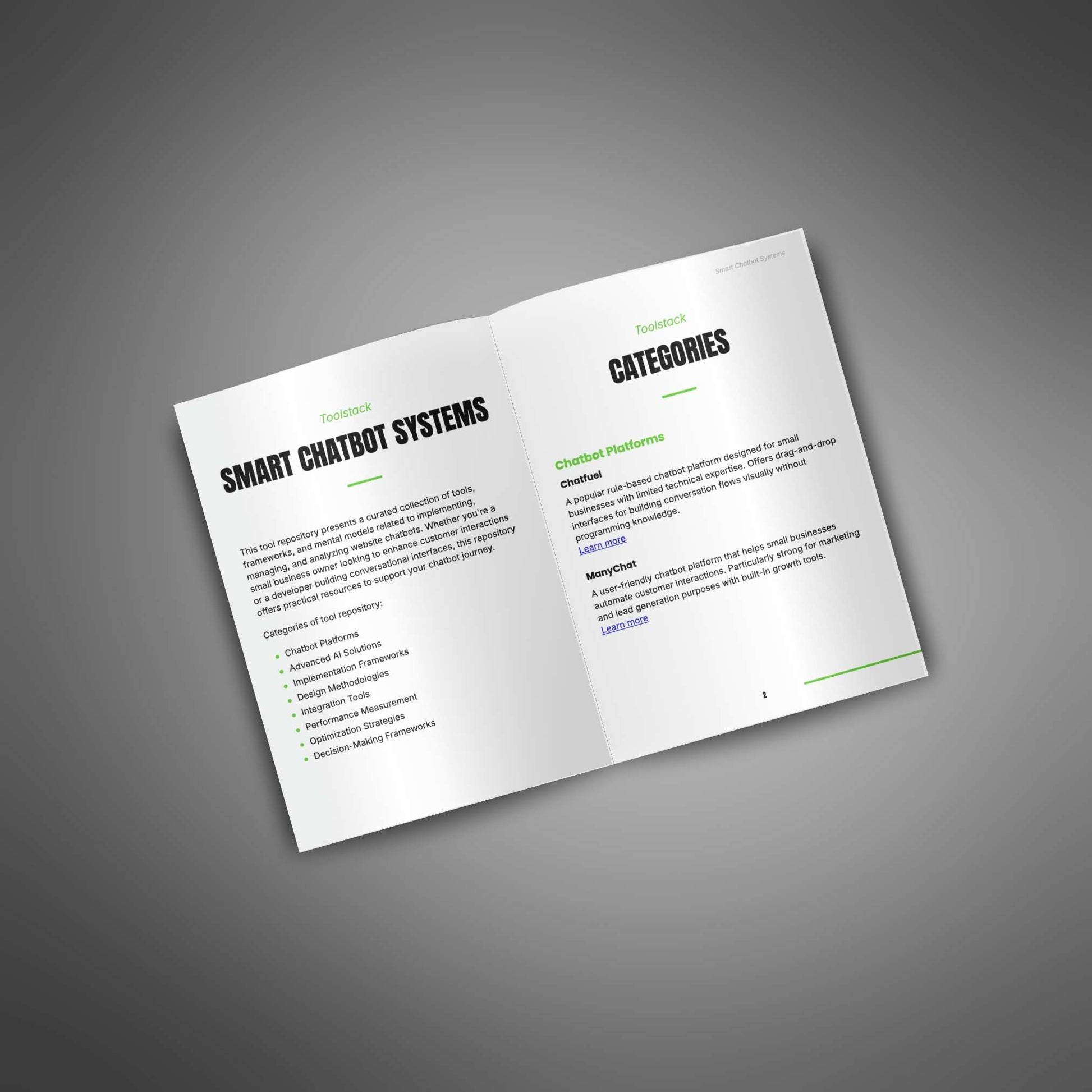 This toolstack provides your customers with a curated collection of essential resources to build smart chatbot systems. It offers a variety of tools organized by task, including planning, designing, testing, and improving, giving your customers everything they need to create, launch, and grow a successful chatbot for any business.